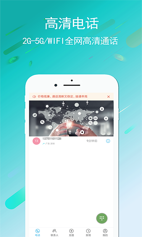 【免费电话】注册即送高额通话时长,O月租,0流量,超低资费为您节省95%话费;
