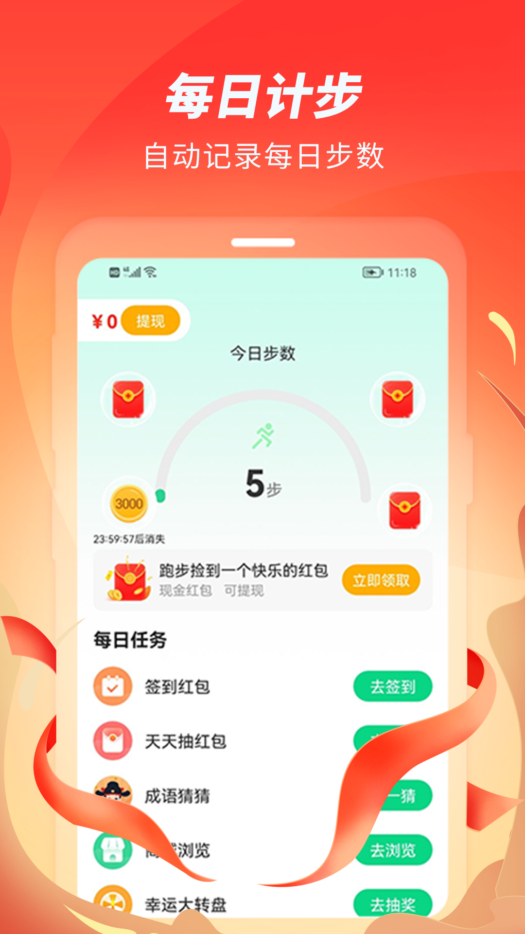 【记步】记录每日步数,让您时刻掌握自己的运动过程,保持健康习惯【步数打卡】每天运动达到目标步数就可以打卡领取运动币一起晨起打卡激励全民大健身,燃烧卡路里兼职赚钱奖励,无限欢乐有趣步行。