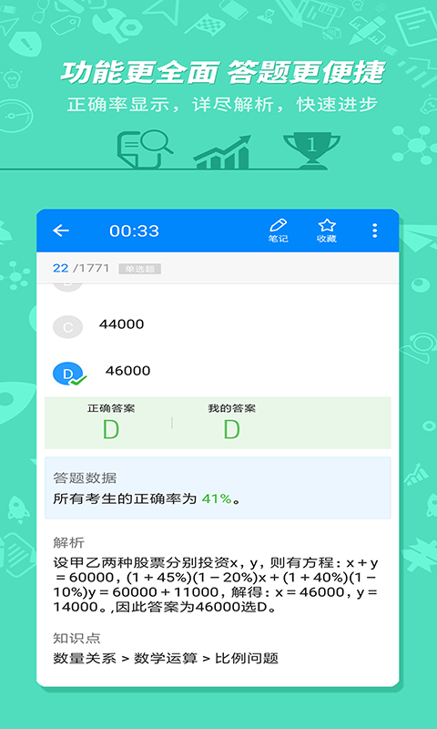 3、正确率分析功能,帮助用户了解自己的学习进展,找出薄弱环节并进行针对性学习。
