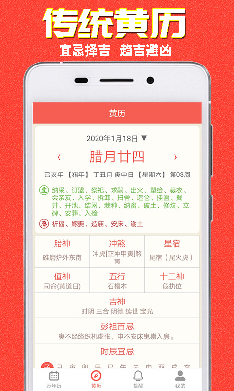 2、老黄历:黄历宜忌、冲煞、时辰宜忌查看;