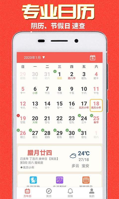 1、日历万年历:24节气、农历、公休日、天气预报等查询;
