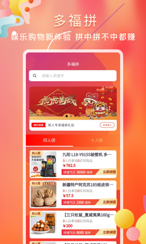 1.简洁明了的购物界面设计,让你能够一目了然所有的产品分类,方便你根据自己的需求进行选择。2.每天都会更新不同的折扣活动,你能够自由参加,快速进行拼团,还有超多不同平台的优惠券可以领到手软,值得下载。