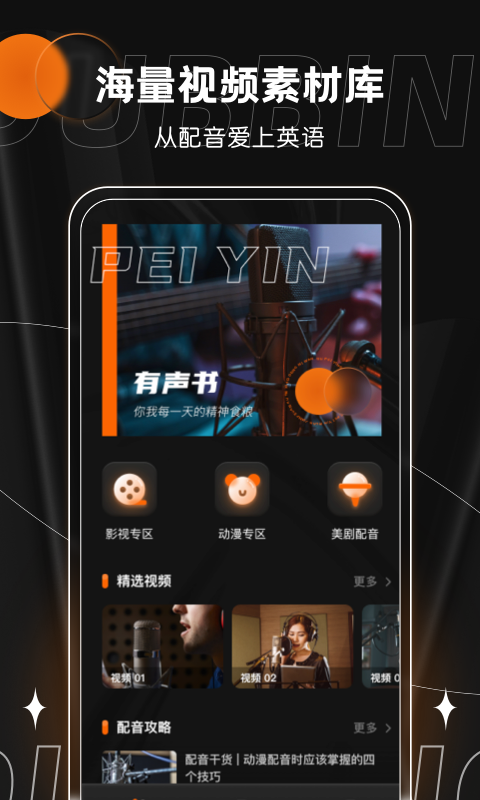 配音:影视专区、动漫专区、美剧专区、精选视频、配音攻略