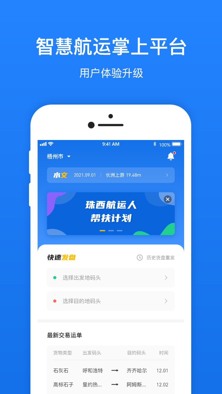 【海量船源】严格认证真实船源、实时更新船期计划、可根据智能定位筛选附近区域、指定区域内空闲的船舶,一键约船,选择多、速度快、无需等船。【一键发盘】一键发盘,货源信息定向推送给合适的船舶,再复杂的承运要求也不怕,智能轻松推荐理想承运船舶!