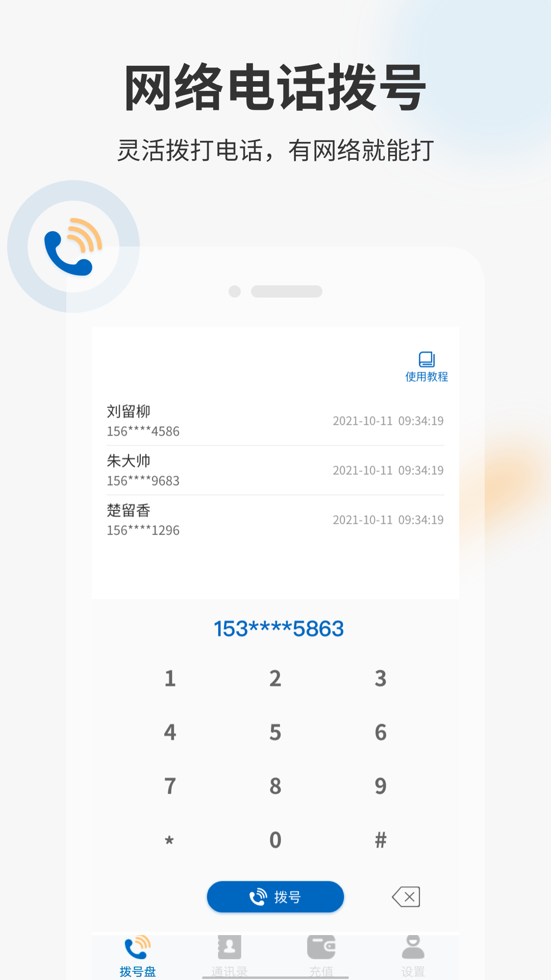 【方便快捷】一拨即通,3G/4G/5G、WIFI都可高清通话,拨打任意号码对方不需安装;