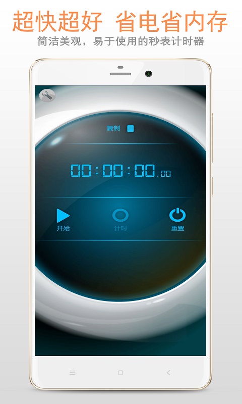 计时器是一款根据生活所需设计的免费工具,同时也是一款漂亮实用的秒表; - 无后台启动,不偷流量,不盗隐私,不耗内存; - 计时器、秒表的操作简单,启动速度快,占用内存极小; - 支持从Android 1.5以上的所有版本,兼容性超好; - 该工具让你的安卓手机进化为强大的计时器和秒表工具,是您工作,学习,生活中的实用小助手!财神爷站提供计时器app官方版下载地址,有需要的用户可免费下载使用!
