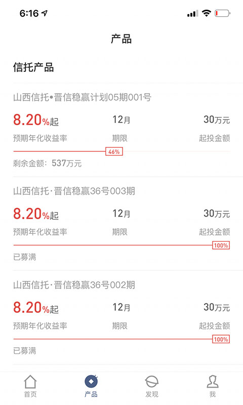 1.信托产品直接进入到产品页面中就能让用户查看到各种各样的信托产品信息