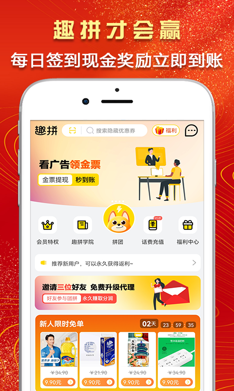 2、购物返利通过趣拼吧,在“淘宝”“天猫”“京东”“唯品会”“拼多多”购物,同样的商品、同样的价格,更大额的优惠券,而且还有返利!