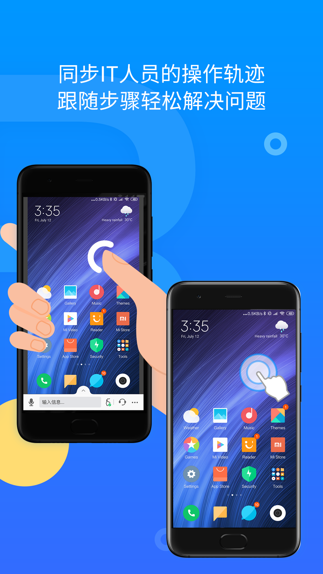 2.将9位连接码告诉您已下载AirMirror的伙伴 (注意:您的伙伴必须下载AirMirror而不是Remote Support才能与您建立连接) 3. 您的伙伴通过9位连接码连接到您的设备后,你们就可以开始聊天啦! 功能介绍 屏幕共享 由您主动选择是否分享您的屏幕画面,与伙伴同步观看并找出解决方法 引导手势 能即时显示您的伙伴的操作轨迹,准确引导你解决问题 隐私安全保护 在您分享屏幕其间,您可以随时暂停分享,保护您的密码和个人隐私不外泄