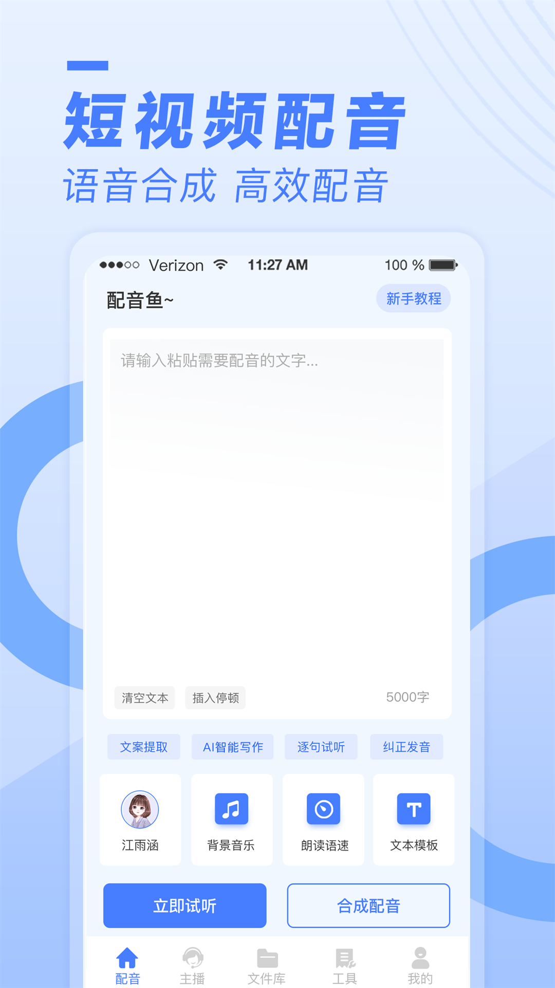 1、 声音风格:近300位AI合成配音主播发音人,任你选~;2、 语速调节:自由调节配音语速;