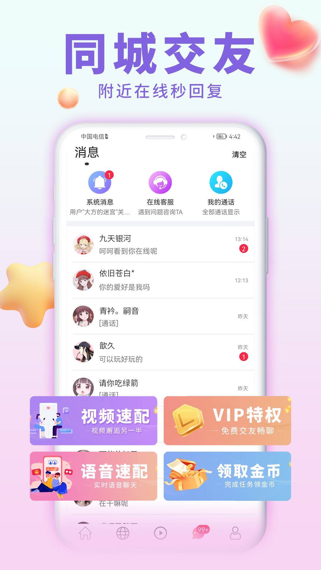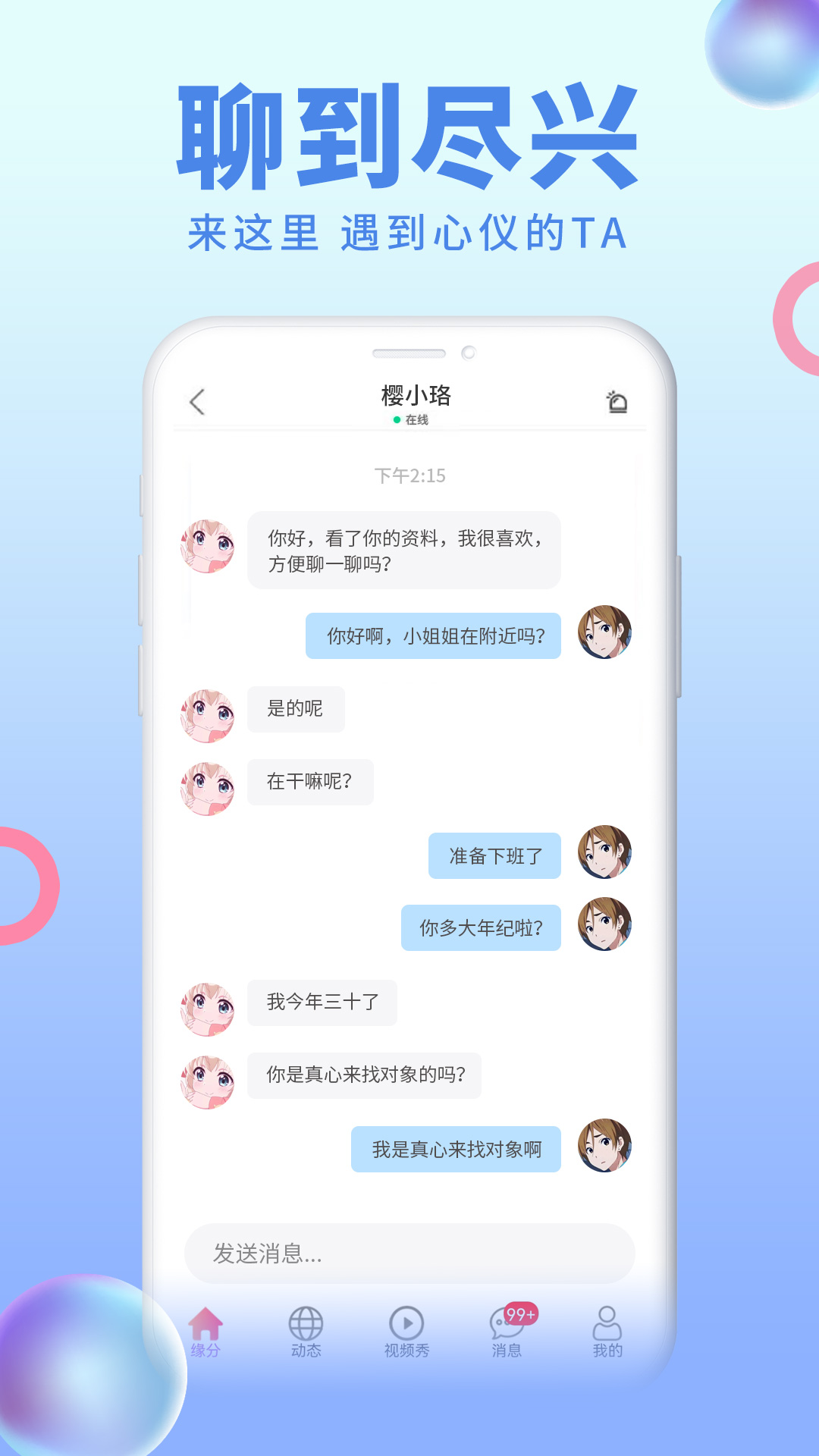 支持用户与心动的对象进行私信聊天交友,通过私信聊天来互相增进感情