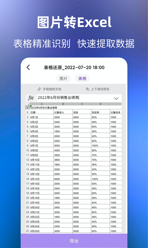 *文字提取支持表格识别,可精准识别Excel表格,智能解析表格数字,告别繁琐数据录入。大幅提升数据录入效率。