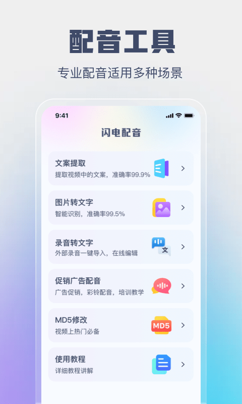1、一键语音合成:输入文字秒转语音,自动化合成。