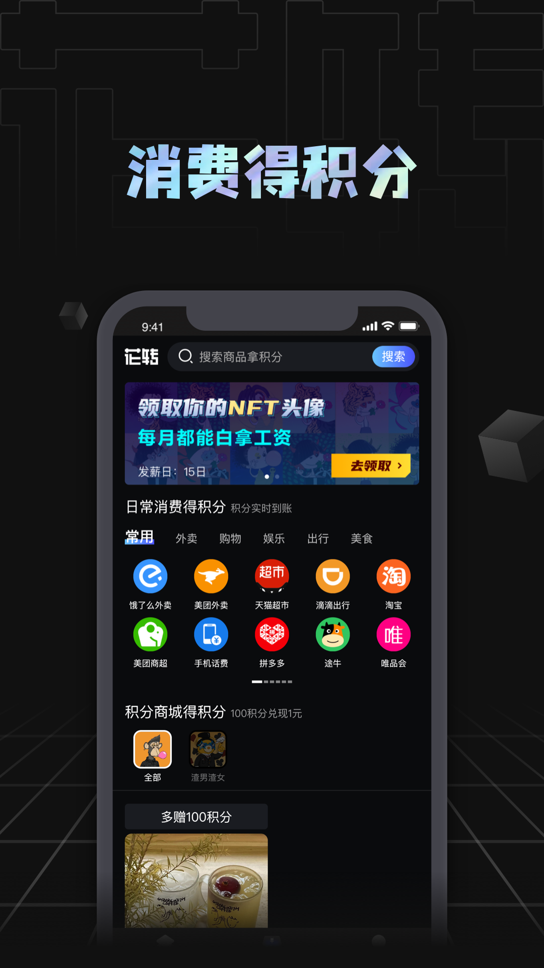 消费挣钱——点外卖、购物、打车等等日常消费都能获赠积分,积分可实时兑现。