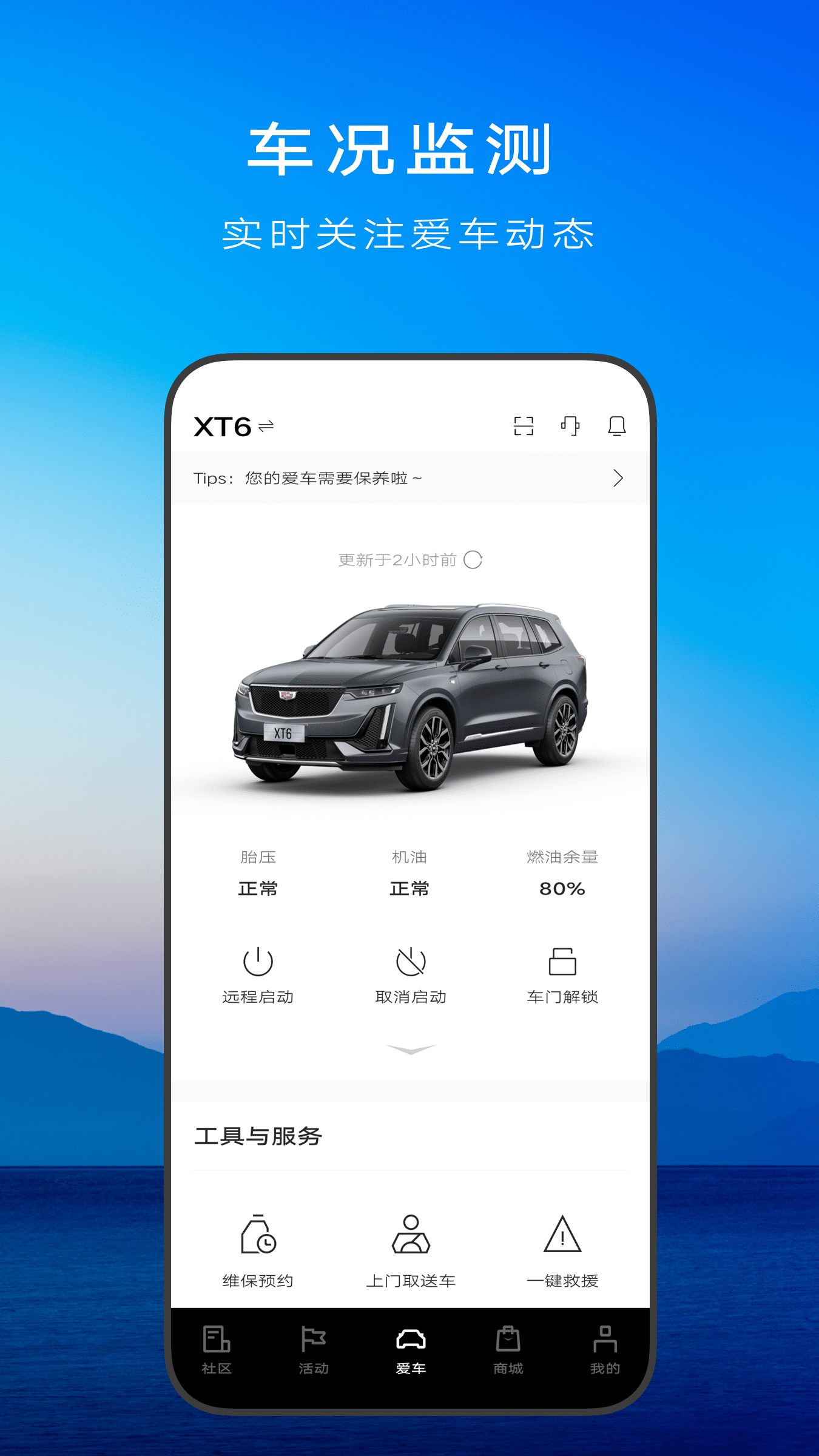【爱车】主要包含维保预约、掌上车间、上门取送车、安吉星等功能,