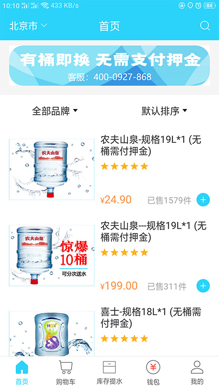 【服务特色】用户下单,库存商品,预约时间送水。品牌任选。