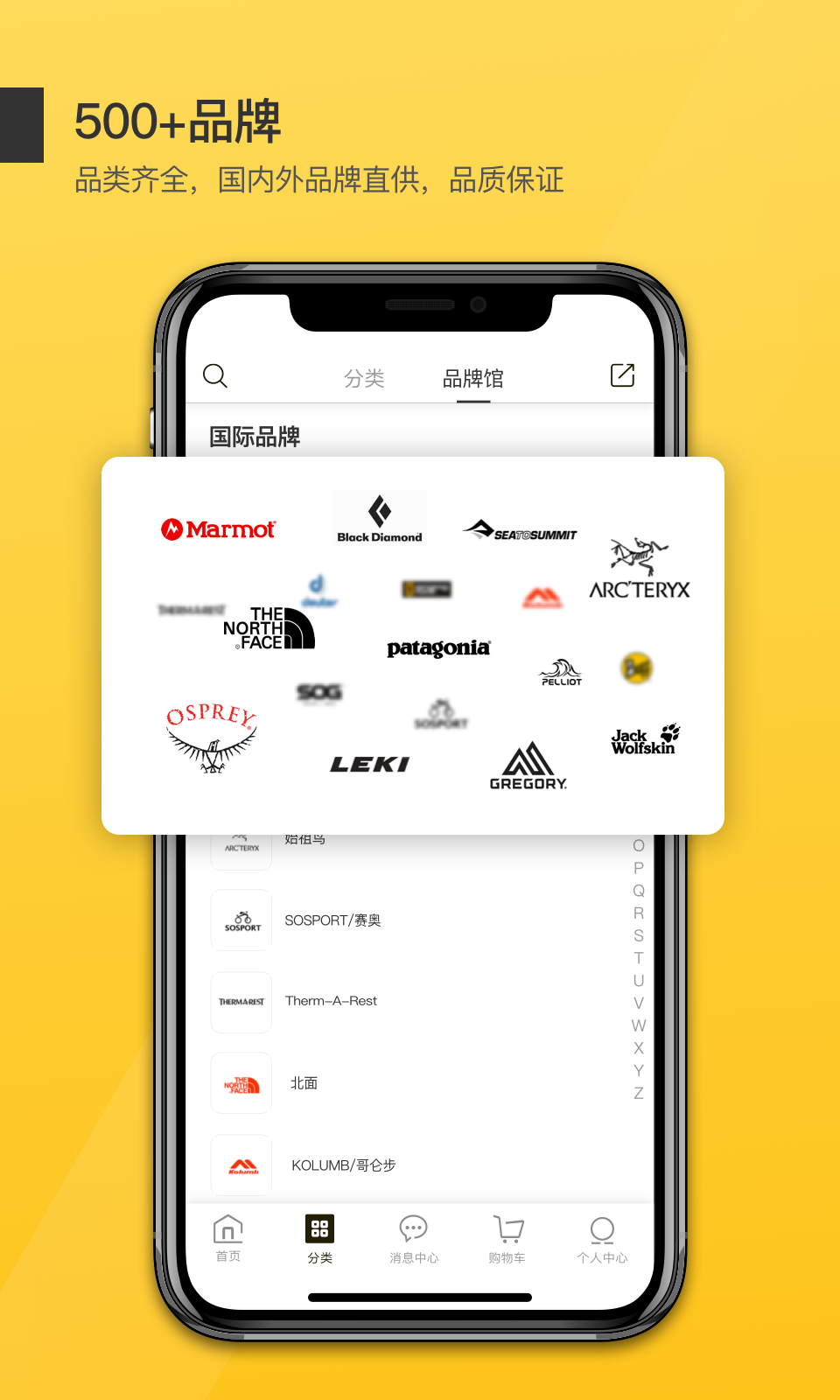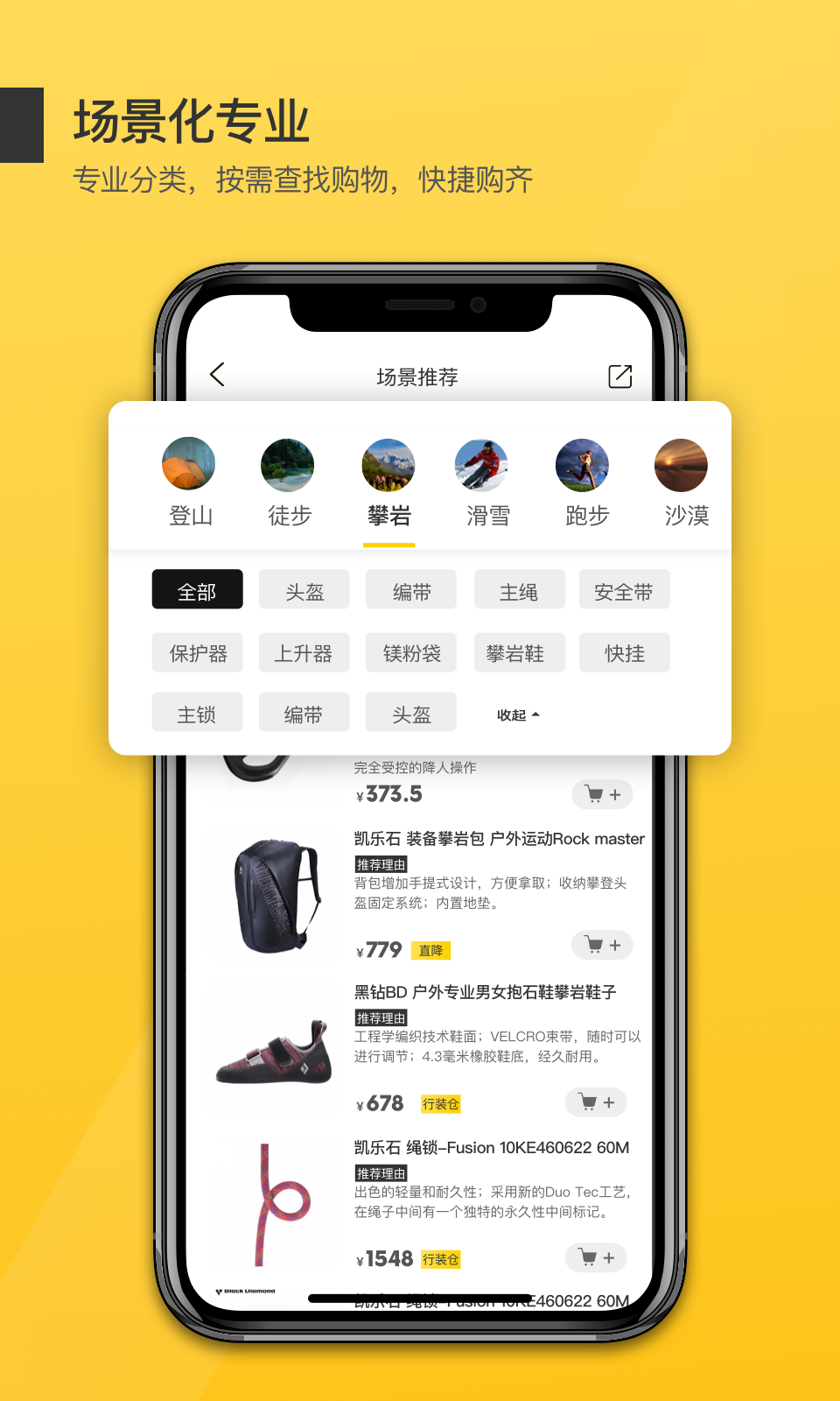 全球户外品牌一站式可以买到。内置行业导购功能,没有经验也能买对装备。