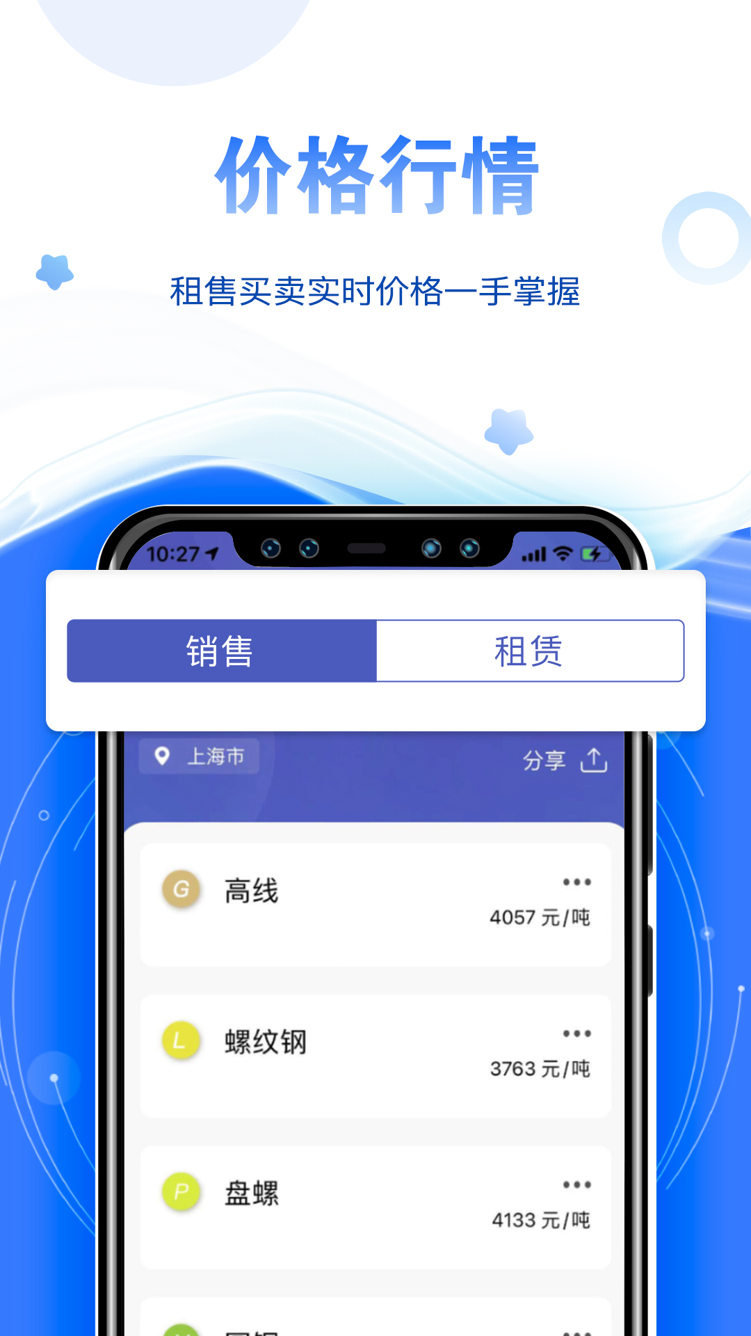 3、价格行情: 租售买卖实时价格一手掌握,实时查看建筑材料价格行情动态。
