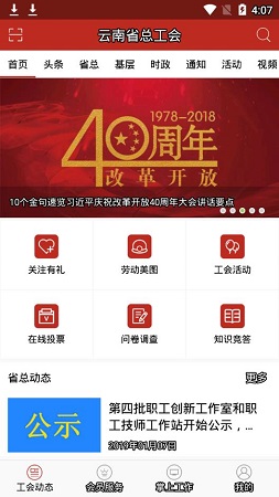 “云岭职工”是云南省550万职工群众了解党和政府方针政策及工会工作的窗口,也是工会联系、服务职工群众的新平台。通过后台服务支撑系统,将为职工群众提供更有效的、实时性强的各类动态、活动以及学习等功能。