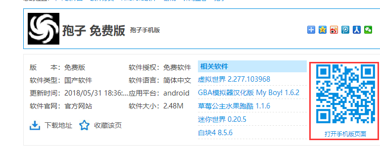 1、可以打开手机浏览器扫描页面右上方孢子游戏二维码,进入手机端的下载页面
