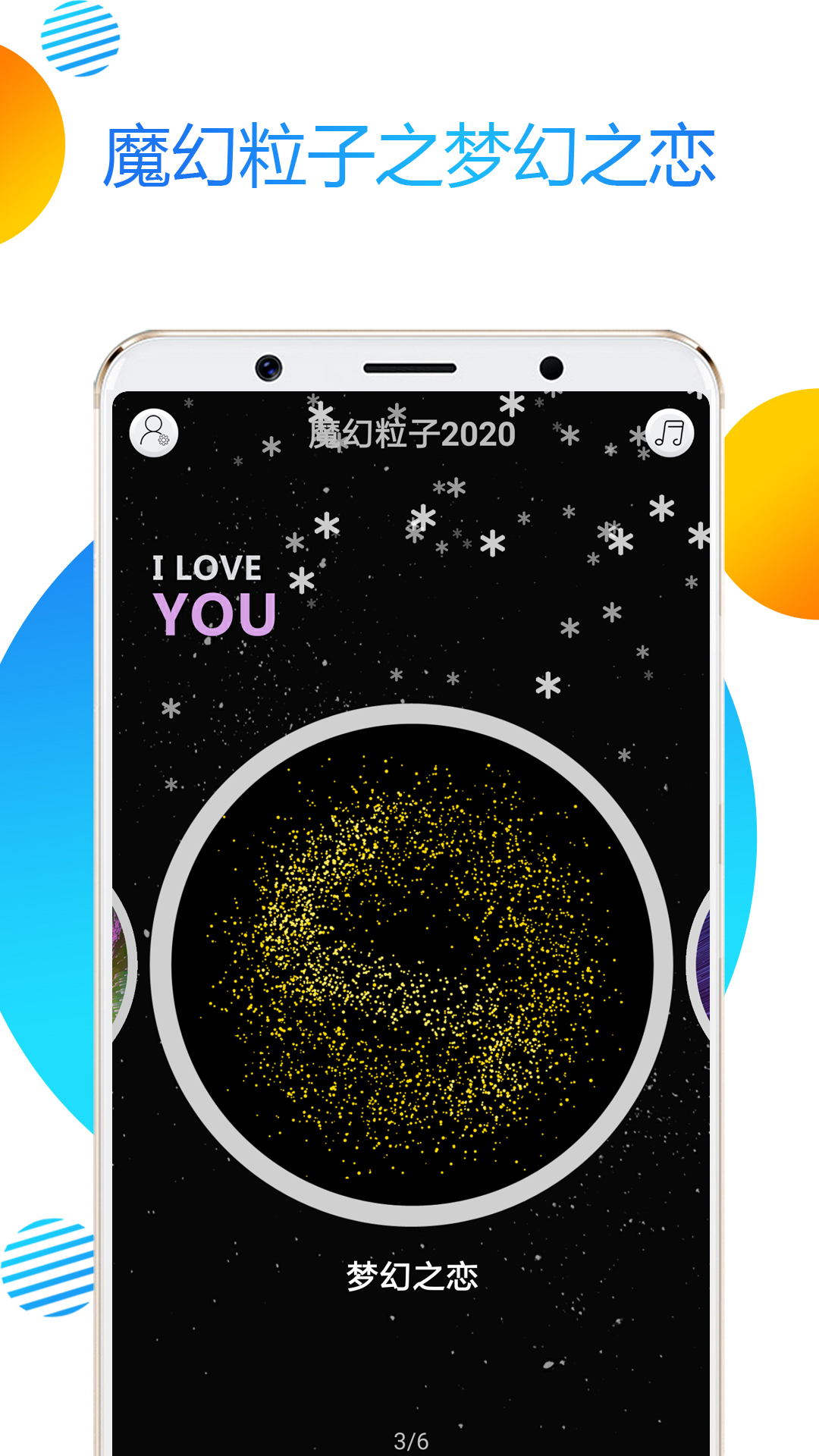 闪电风暴,梦幻之恋,七彩风暴,科学力量,多姿多彩等各种丰富的场景模式可供切换,每种模式可设置粒子的数量、大小、颜色、运行速度等各种自定义设置满足您不同场景的表白需求。应用中还提供了各种浪漫的钢琴曲可作为背景音乐,亦可自定义您与恋人喜欢或者有特殊意义的歌曲作为背景音乐。应用更有截图、录屏功能让您将作品保存到手机或分享给您的恋人、家人、朋友等。魔幻粒子2020更新日志: