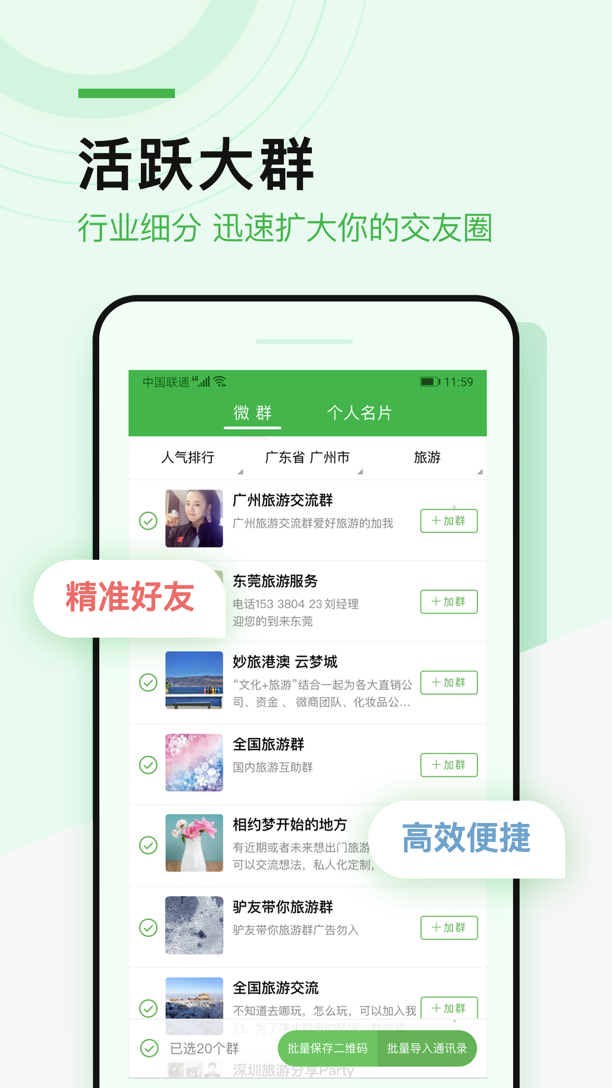 【一键加群】日更新数十万微信群qq群,海量真实精准微信qq好友,一键添加;