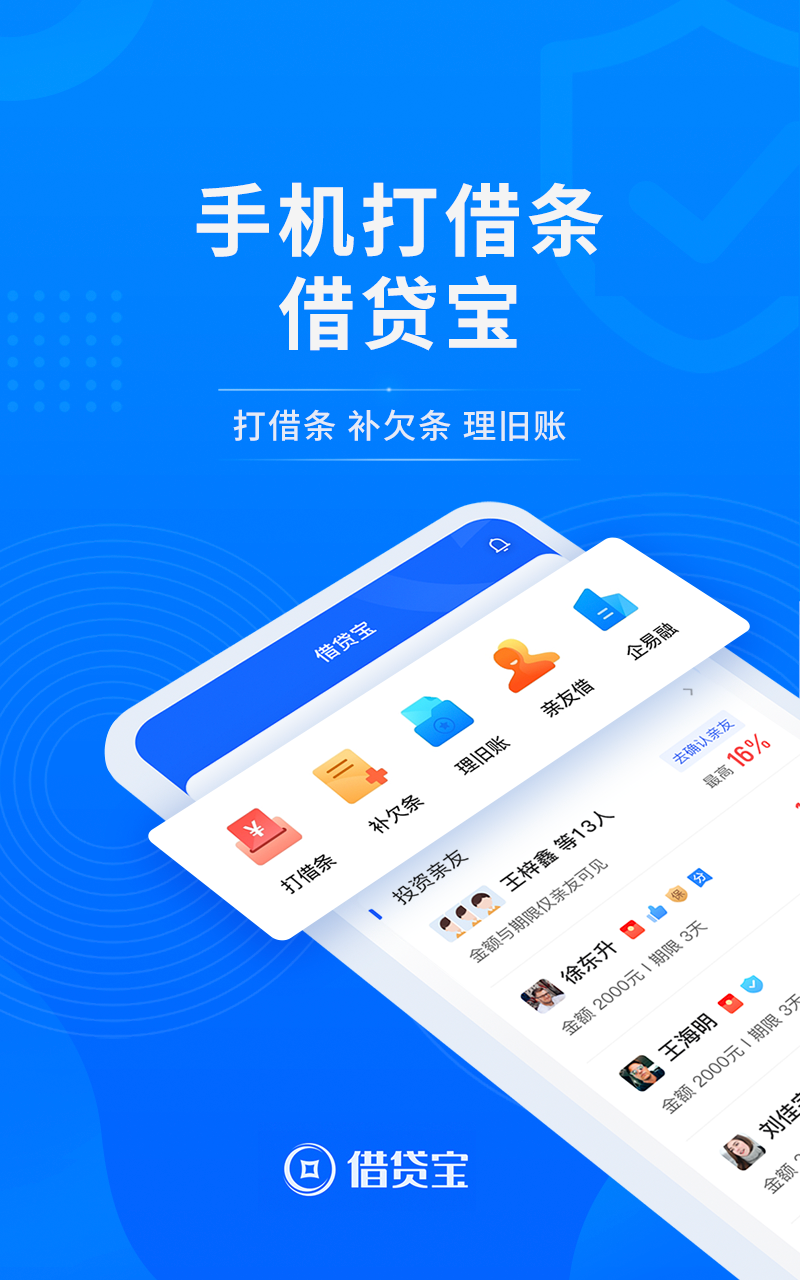 1.打借条:一对一借钱,打电子借条,系统提醒还款。规范的借款协议自动生成,云端存储,法院认可效力。