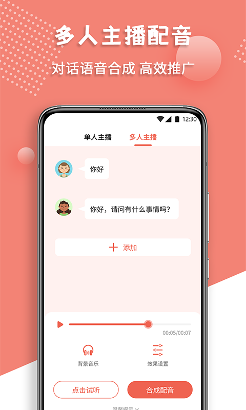 4,多人配音:支持同时选择多个主播配音,打造专属你的配音效果