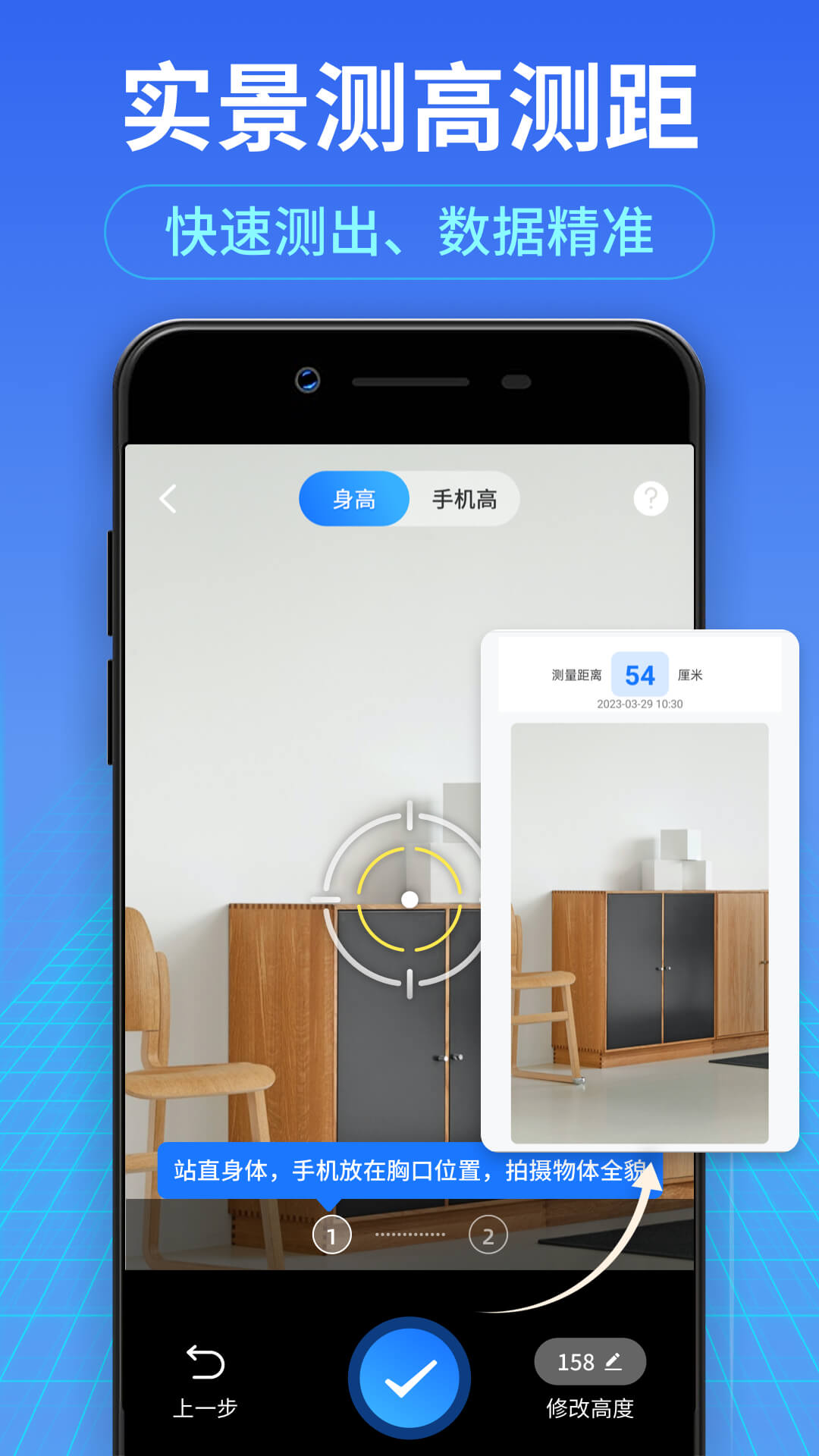 2:将十字准星的中心对准待测物体的底部;