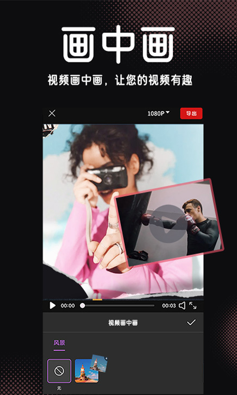 【滤镜和特效】 - 完全复刻胶片效果的色彩滤镜 -超级酷炫的动态视频特效 -调节视频的亮度对比度等