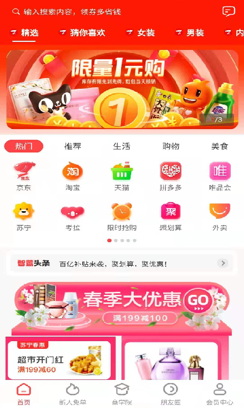 【爆品秒杀】每天8点、12点、15点、20点、千余款特价商品供你挑选,搜罗全网超低价优惠券商品,时时上新的爆品集中地。【搜优惠券】全网隐藏的商品优惠券,下单前搜索商品标题,即可领取,还能抢免单。更新找券助手,全方位时时为您省钱,邀请好友下载使用app,还能得补贴。【大牌抢购】品牌集合地,给你品质保证,每日主题上新,给你更多新鲜好货。多个场馆任你挑。