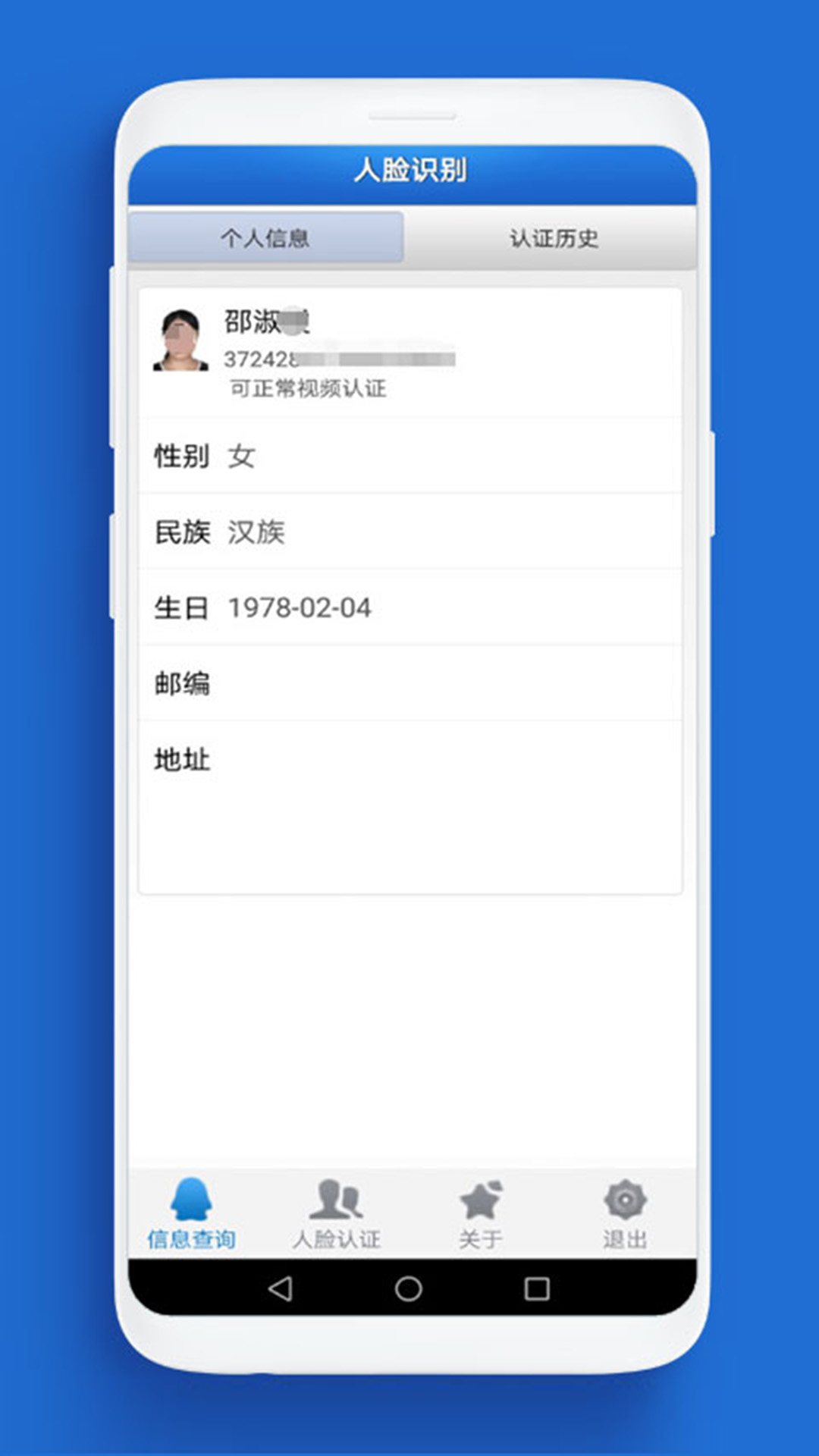 在人脸自助认证app平台上成功进行过验证的信息会自动在数据库中建立档案,作为后续验证的模板,人脸自助认证app既解决了异地或行动不便的退休人员进行养老资格认证,又解决的了老年人随年龄增长发生衰老现象对人脸识别的影响。
