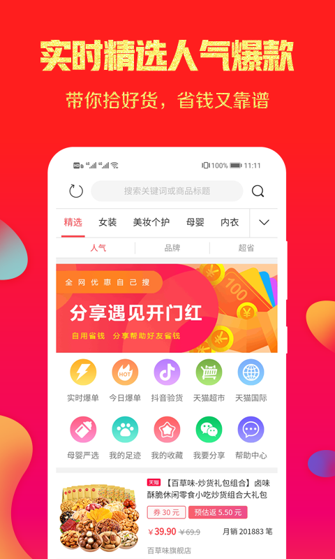 聚合超级搜索、精准搜索优惠券返利。各类福利购、零元购(0元购)、一元购(1元购)、九块九包邮优惠活动不定时开展,小券猫返利优惠券本地生活频道,包含美团饿了么外卖天天现金红包、省钱红包,肯德基、麦当劳、星巴克、奈雪の茶(奈雪的茶)、瑞幸咖啡、百果园、喜茶第三方在线点餐业务、折扣点餐、买菜返利、天猫超市返利、美团超市返利、电影票8折起、电影票返利、高德打车、滴滴打车、花小猪、洗车、飞猪、汽车加油、生活充值、猫眼电影、酒店折扣返利、火车票折扣返利,电信移动联通话费充值92折起。绿色轻应用、方便好用。真省钱,真返利!小券猫更新日志: