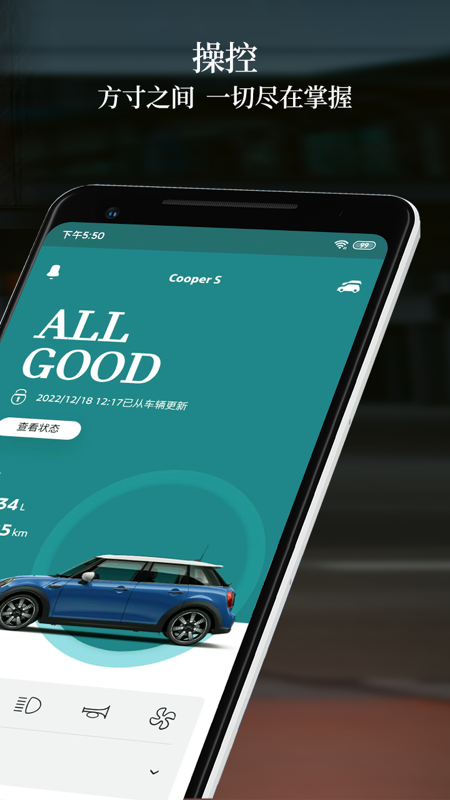 - 车辆:帮助MINI新车主一键激活互联驾驶服务。远程访问并管理您的爱车,轻松远程控制车辆门锁,便捷查看剩余油量、续航里程等重要信息,驾程状态尽在掌握。并可在线完成售后服务预约。