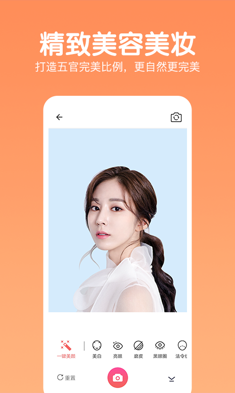 一键修图:一键修图,完美美颜,另外提供人像精修、修身等多项调整功能