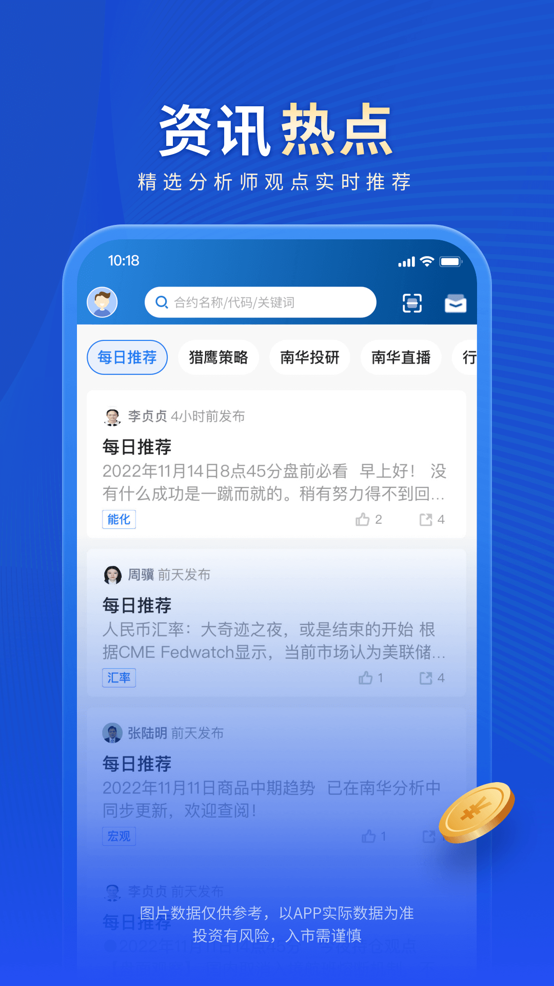 6、南华直播间:每周数场名师直播,免费学习,实盘分析,解读行情。