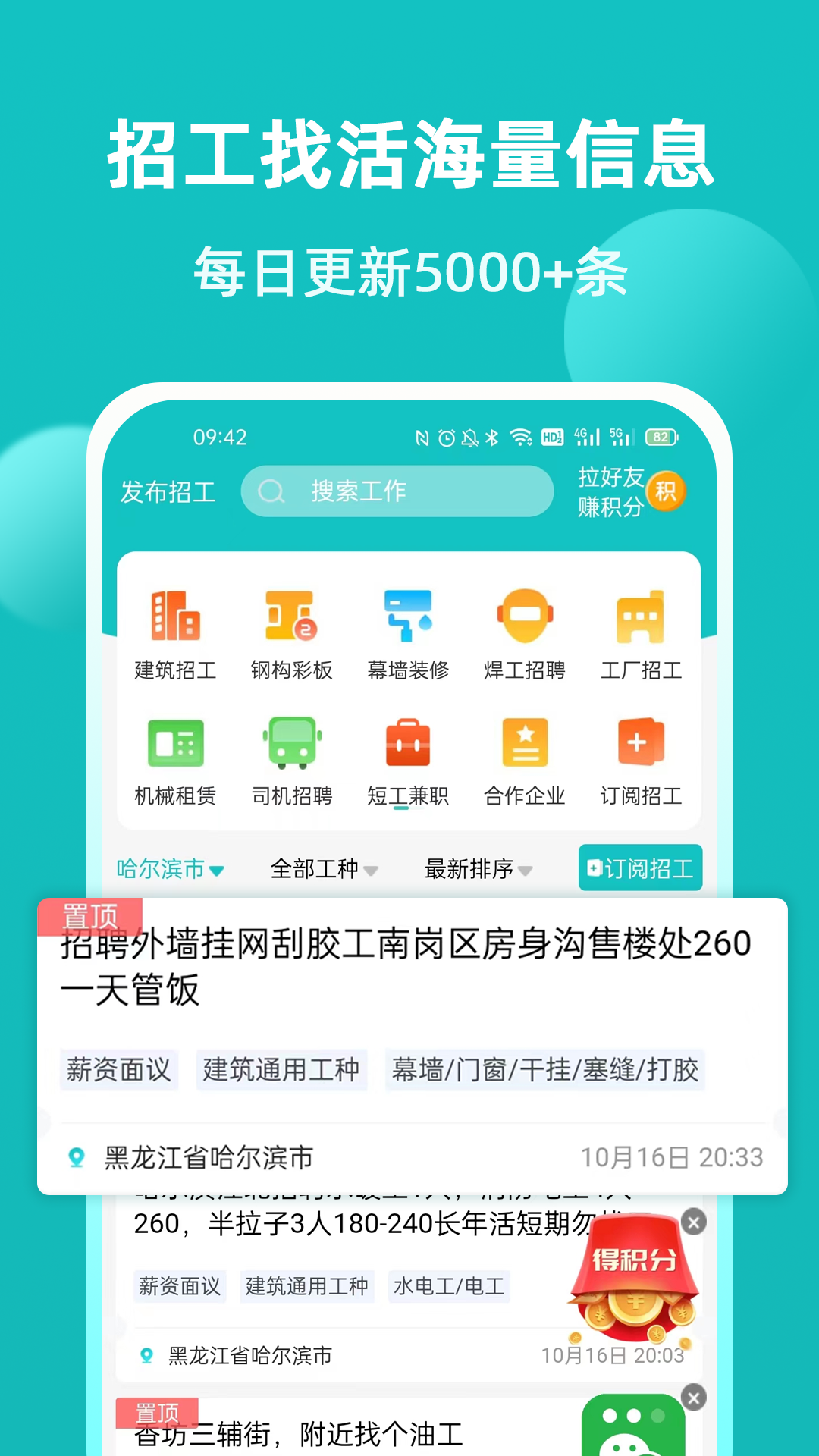 建筑业招工找活、工地记工记账、工地员工考勤、招聘短工、工地记加班、建筑工地管理、工地省钱购物