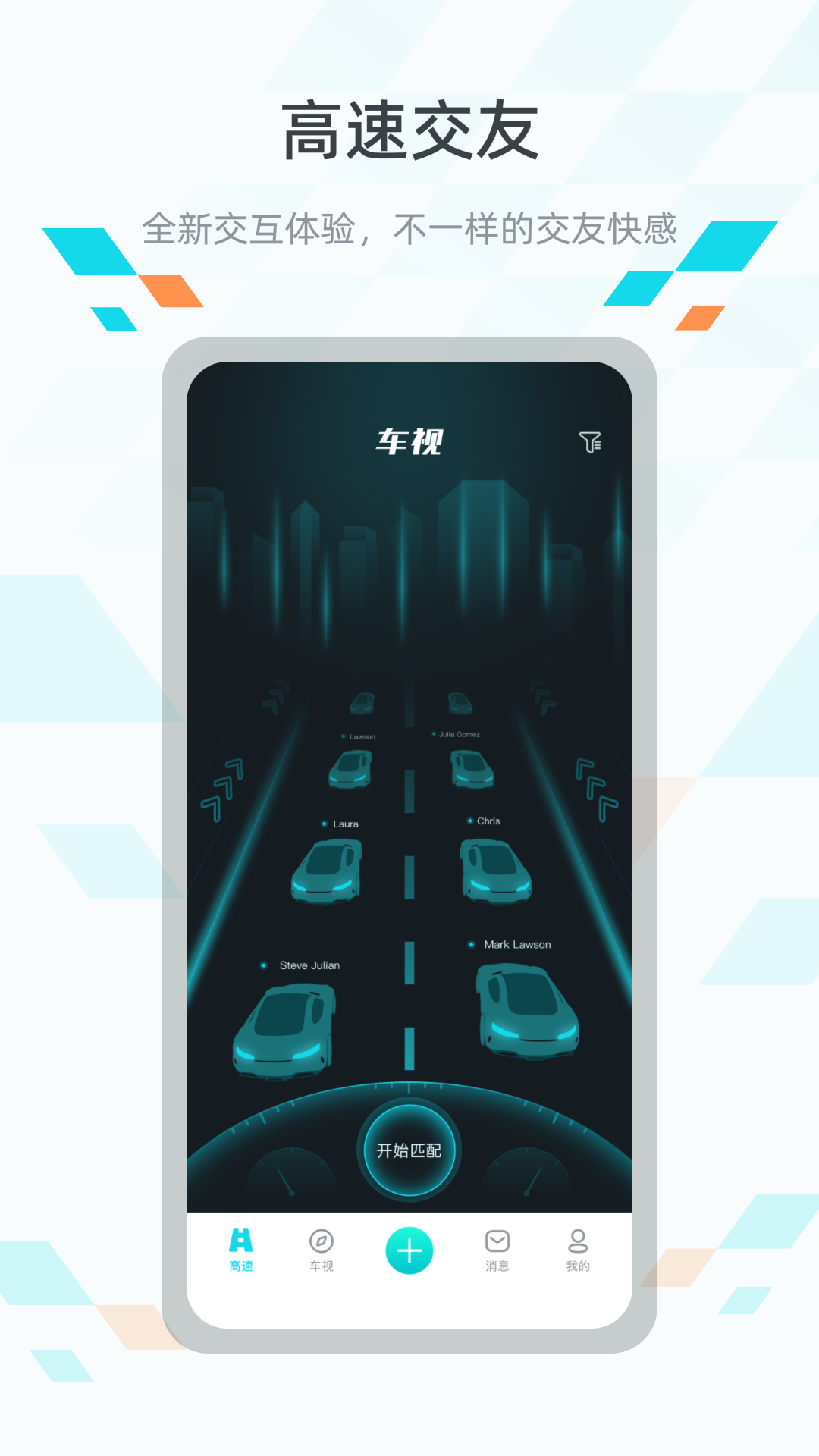 【高速交友】 - 在高速公路上遇到心仪的车友,别再眼巴巴地望着他们车尾消失了,来高速轻松找到路上的缘分。【开车匹配】 - 更加个性化的交友方式,更快匹配与你相似车友,互相交流激发更多有趣的话题。