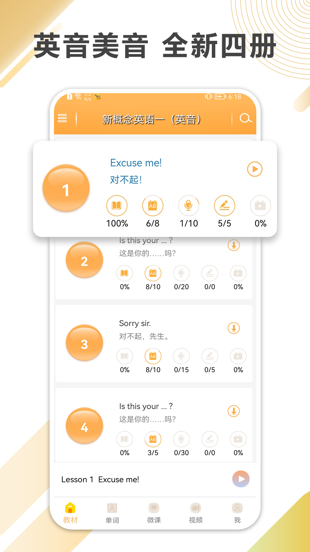 1、专业语音评测。新概念英语全四册APP新增语音评测功能让口语评测更专业,过程更高效,结果更详细,让您做自己的口语老师。2、经典的外语学习微课。主要包括新概念英语、四六级、VOA英语、考研英语、托福、雅思等考试类的匹配课程。每节课都是由专业的名师讲解经典课程内容。
