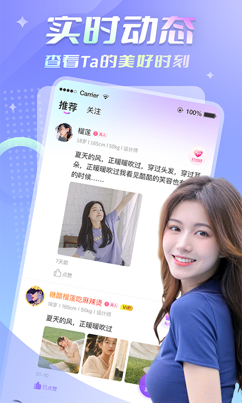 【真人认证】为了保证交友约会的真实性,人工多层次审核,不仅审核照片和用户的资料信息,全方位保证交友聊天的良好体验
