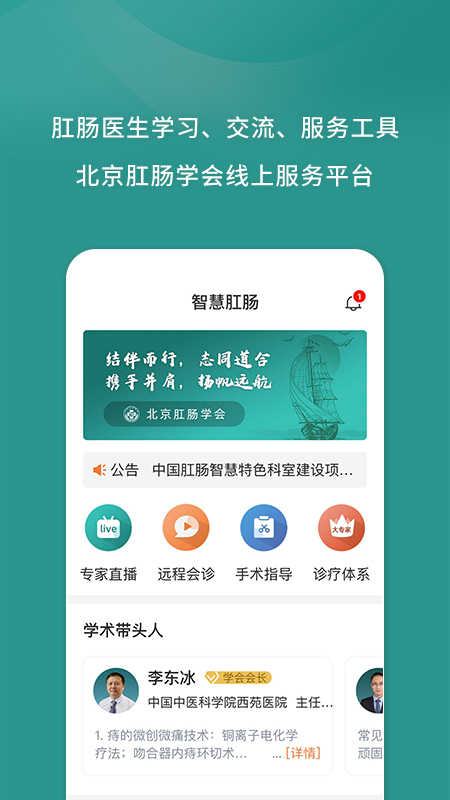 ——专家直播国内、外的肛肠科专家不定时的提供学术讲座、专家论坛、在线直播课