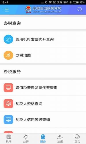 安徽国税app是安徽省国家税务局的官方APP。发布财税热点头条,并为用户提供权威解读及官方答疑,让智慧之旅由掌间开启。