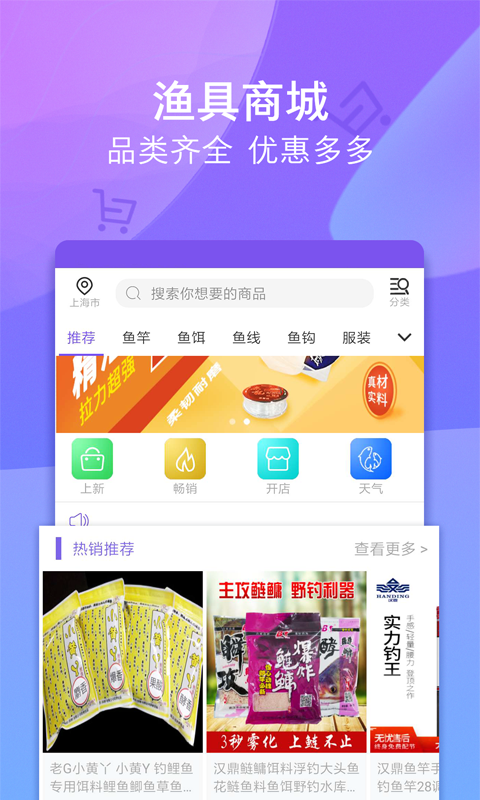 ·装备齐全·品牌众多,渔具齐全,随意挑选,一键合并付款更方便。从此足不出户就能买到心仪的渔具。