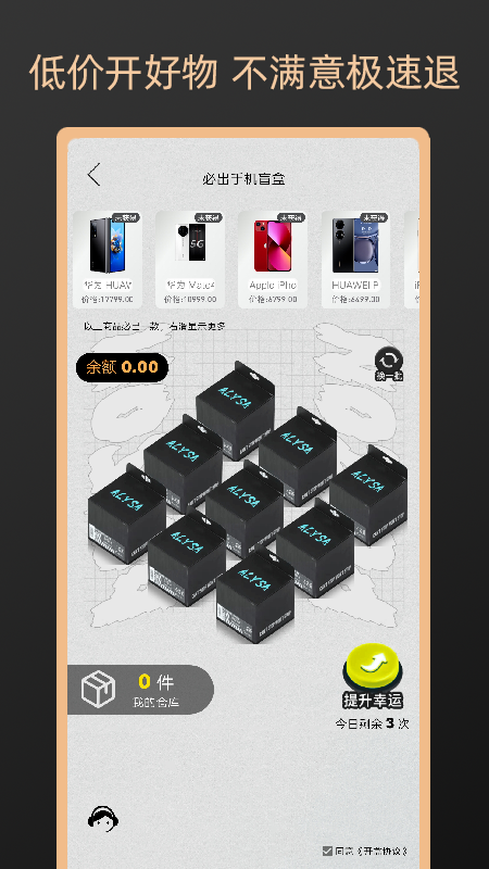 【潮流正品,每日上新】 每日上新不停歇,上万款正版潮流单品任你来挑。所有产品经过官方严格检验,放心可靠。 元气盲盒APP内涵盖海量超人气热门商品:化妆个护、钟表首饰、数码配件、服装鞋类、手办专区、手机配件、平板专区、背包专区、儿童玩具、拍照专区、运动健身、厨具用品、食品酒饮、生活家电、电脑专区、数码产品、手机专区等,各类商品,应有尽有。