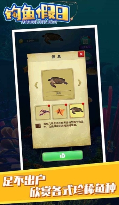 在美丽的海洋中捕获一条高价值的鱼,获得大量的黄金来升级你的船;