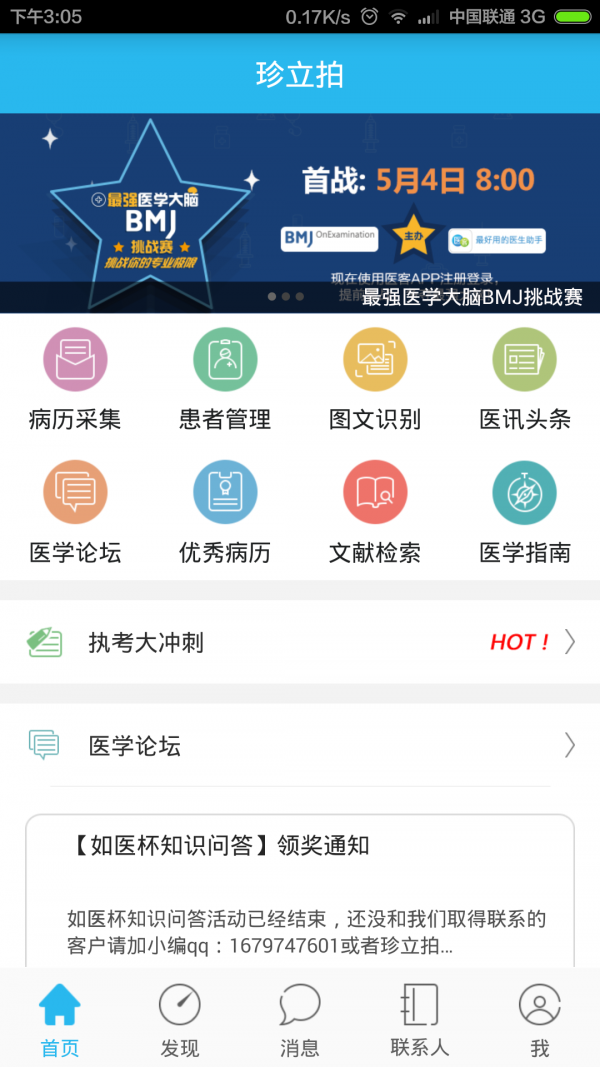 5:问答挑战—医学问答类闯关游戏,分学科设置真题题库,医务工作者可利用碎片化时间学习,轻松休闲寓教于乐。