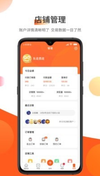 3、店铺管理功能:东走西走微店软件是商家管理软件,具备强大的管理服务项目。商家可以快速开设网店,从货源到销售都可以节省大量精力。同时,商家可以实时查看店铺的订单信息,进行配送员管理,以及扩大店铺的营销服务。