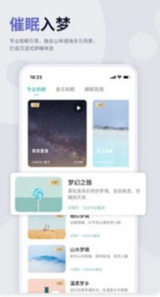 1、全景沉浸式催眠体验:涟漪睡眠软件的核心体验在于其全景沉浸式催眠方式,通过专业的梦境引导、减压助眠音乐、专业冥想音乐等多元化功能,帮助用户快速进入放松状态,从而轻松入睡。