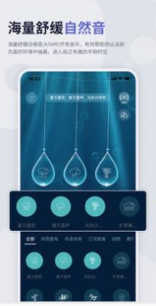 2、多元化自然白噪音:软件内设“山河湖海、森林、雷雨、虫鸣、城市生活、ASMER”等多场景3D环绕白噪音系统,用户可以从中选择适合自己的声音,有效屏蔽外界干扰,快速进入睡眠状态。