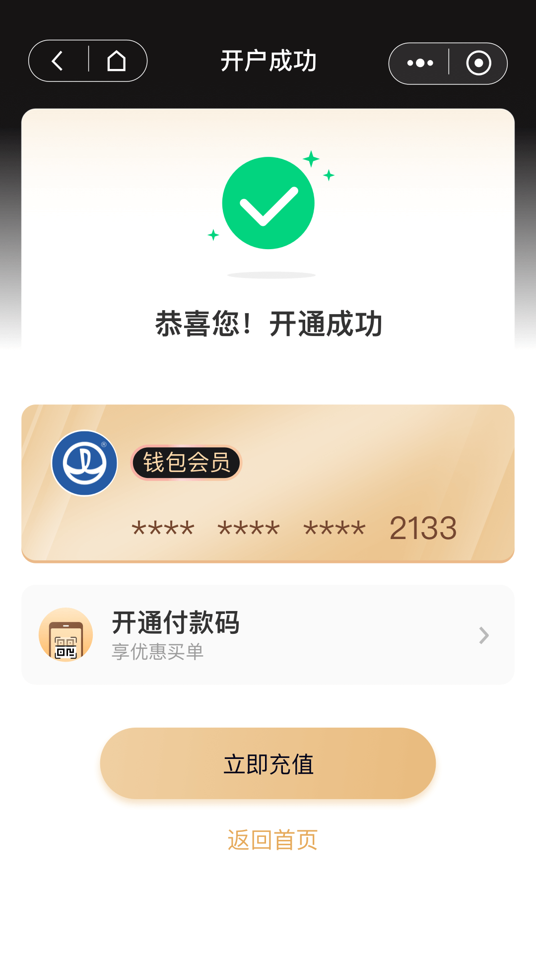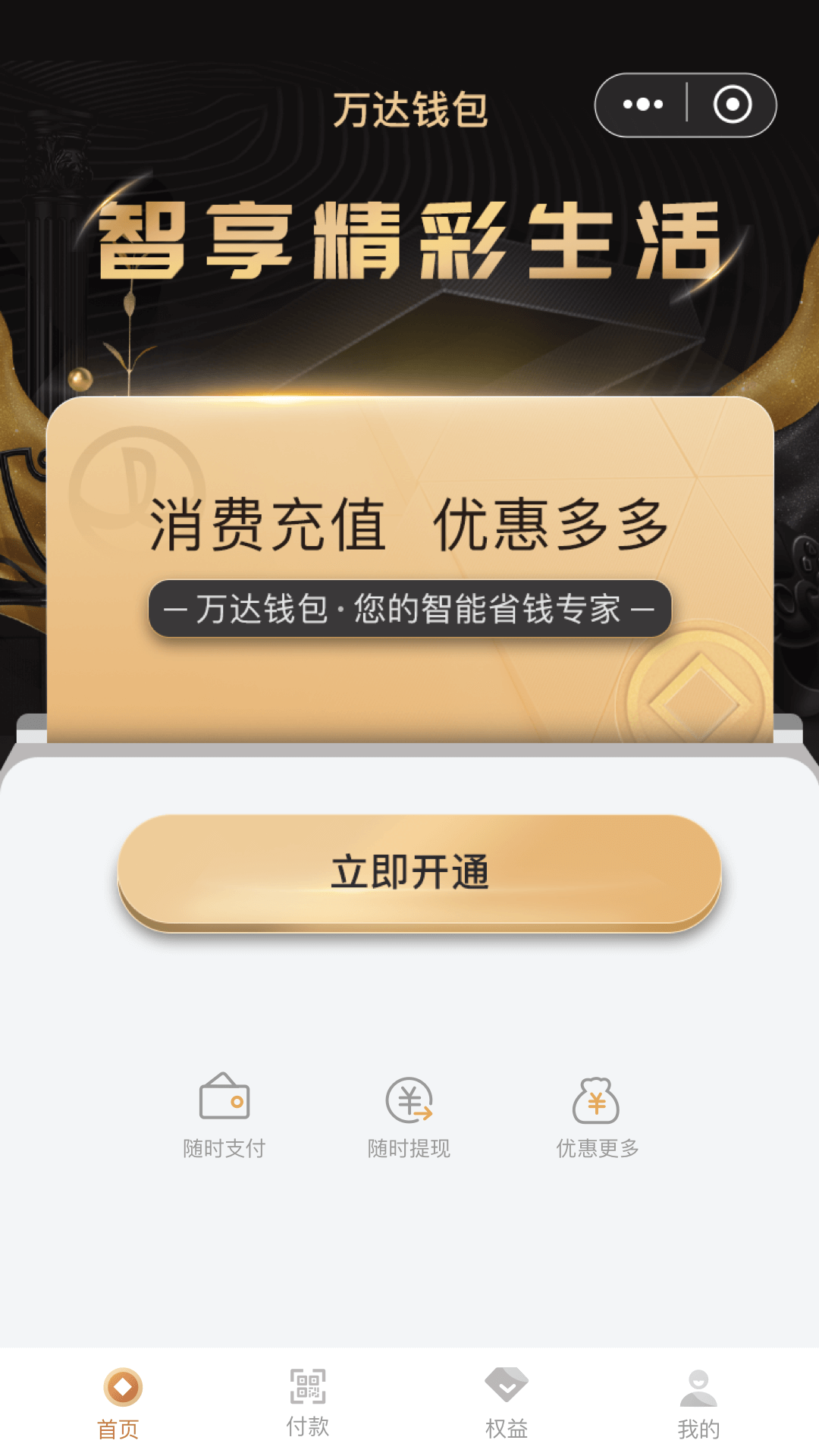支持用户在线开通钱包获取到钱包的消费权益服务,享受更多权益服务资源